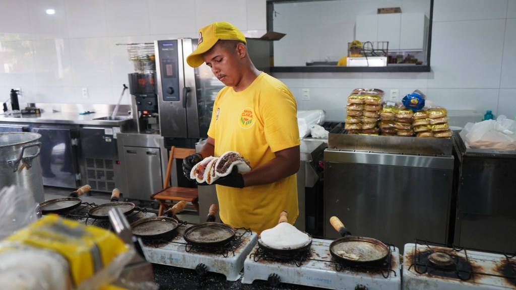 Saímos de Carapibus, na costa do Conde, de manhã cedo (umas 7:00h) e em Cajá, sensivelmente a meio-caminho entre João Pessoa e Campina Grande, uma hora e picos depois, tomámos o café da manhã na famosa Tapiocaria Irmão Firmino. O movimento é grande, quase do tamanho das múltiplas tapiocas que Eduardo — um dos funcionários de serviço —maneja com mestria, dentro e fora das frigideiras perfiladas em cima de fogões de dois bicos, igualmente perfilados ao longo do enorme balcão. Tem que se possuir um estômago generoso para aguentar uma tapioca destas, doce ou salgada, suficiente, à vontade, para dois manos. As tapiocas têm fama, mas olhem que delas também se faz bom proveito.